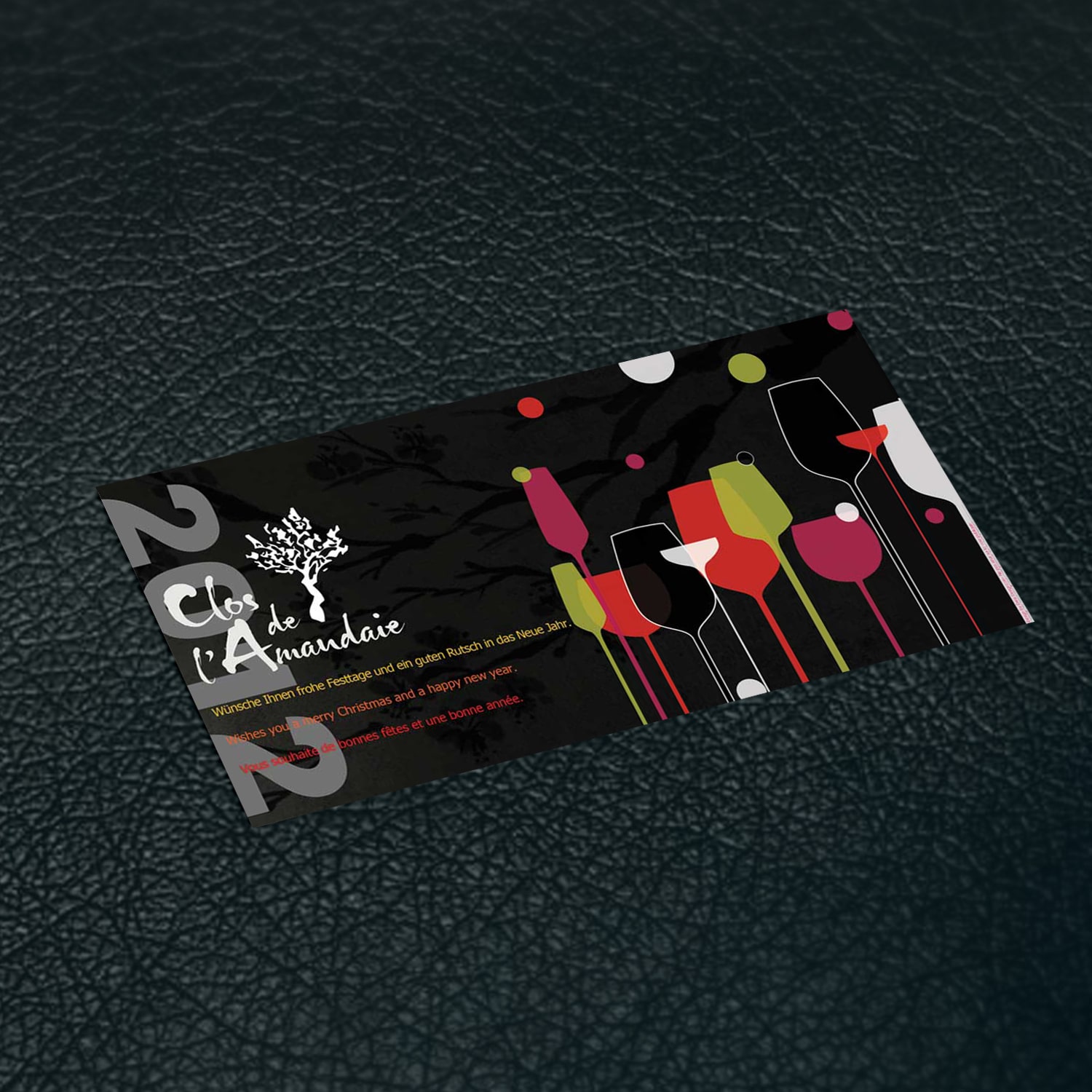 La mission de DRINE DESIGN a consisté à créer une carte de vœux multi-langues pour le domaine viticole : Le Clos de l’Amandaie.
